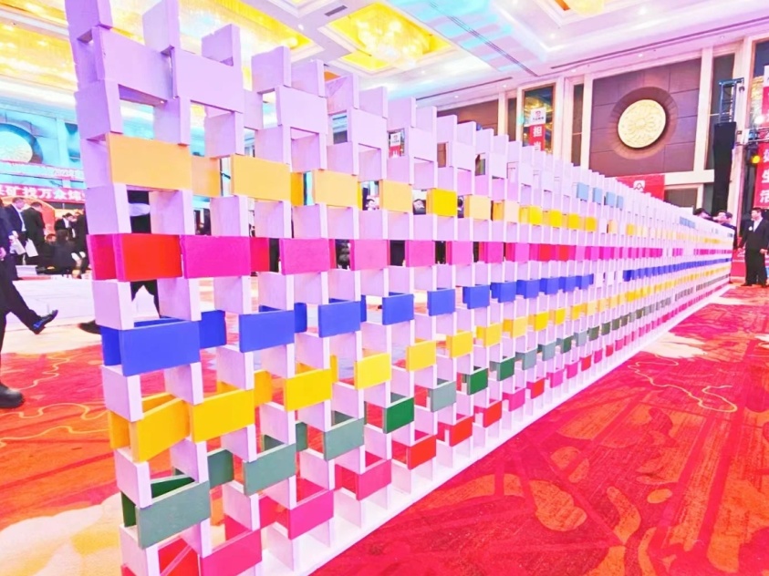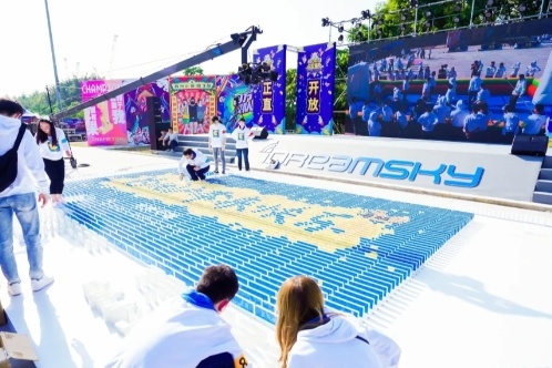 多米诺骨牌游戏规则非常简单,将骨牌按一定间距的尺寸排成单行,或分行排成一片,形成一条长龙,文字,亦或者是一副图案这个游戏非常考验小组成员之间的创造力和协作能力,也非常严谨和细致。图案设计可以融入公司文化,共创蓝图。