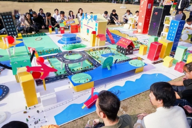 超大型团队创意体验项目之——《共筑未来城》创新型拓展项目是一个大团队集体性项目,需要整个团队上下齐心朝一个目标奋进、努力,最后完成一个唯一的共同目标——未来城。