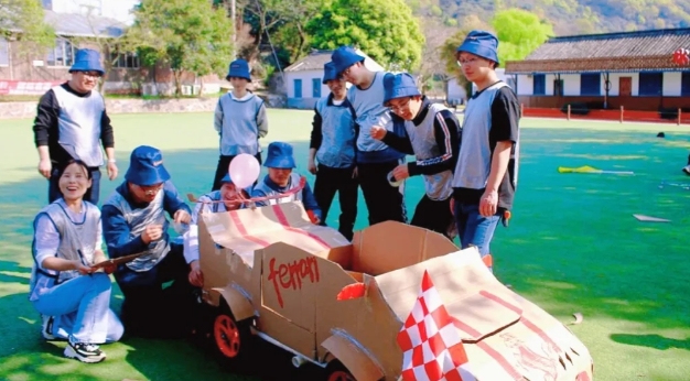团队成员共同努力亲手设计打造出一辆能载人的战车。通过团队成员创意合作及集体智慧,利用最基础的道具制造出一辆几乎完整的F1方程式赛车,要求车辆载人前行一段距离,并且车辆完好。