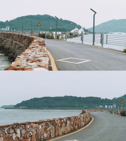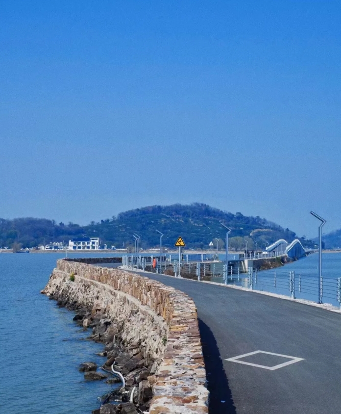 10:30 踏上连接西山岛与阴山岛的堤坝,便正式开启了这场奇妙的徒步。堤坝是太湖上一道独特的风景线,两侧风景各异。行走其间,微风拂面,带着太湖独有的水汽,瞬间驱散了城市的疲惫;