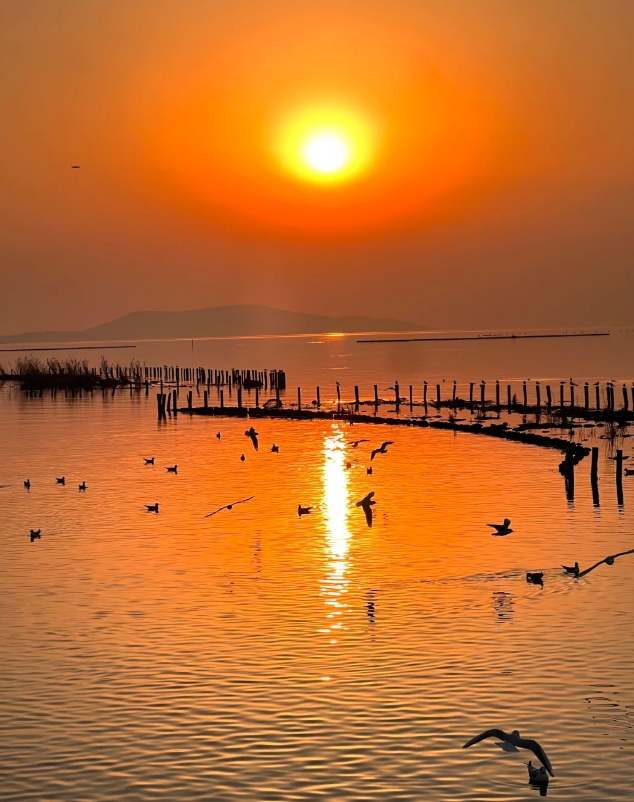 沿着澄澈湖水漫步,邂逅成群红嘴鸥 静赏醉美夕阳,让湖光山色治愈疲惫