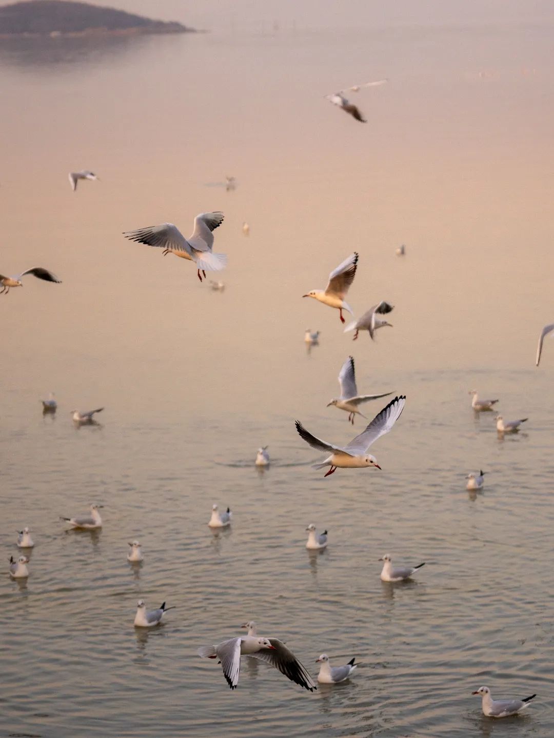 横山岛不仅是观赏夕阳的绝佳地点,更是红嘴鸥的栖息地之一。