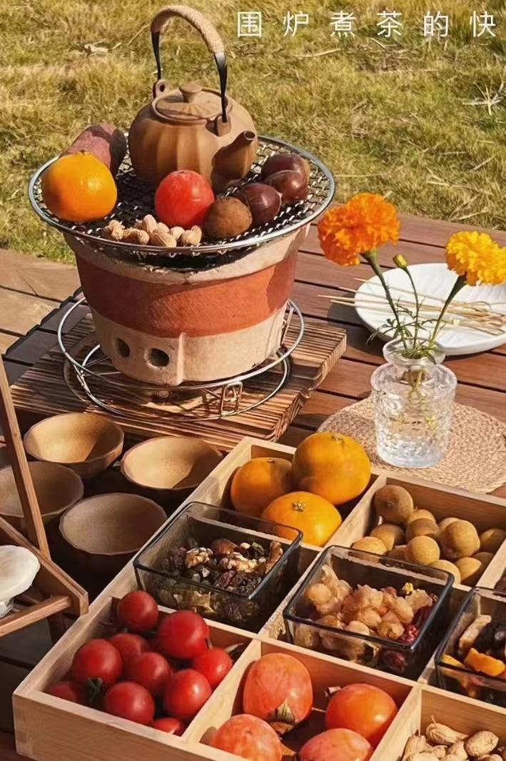 费用包含:天幕桌椅使用+围炉煮茶设备使用+围炉煮茶四宫格小吃+三种时令水果+茶水,去班味项目体验(飞盘、羽毛球、枕头大战、掼蛋、麻将、桌游、K歌)。